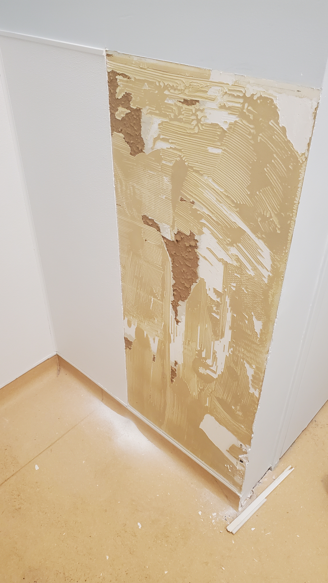 Removing FRP always damages the wall where they are installed. There’s no other way. Insert any flat tool under the FRP and start pulling off. I, usually, do not pull at once because if I do, I may cause more damage to the wall. I prefer doing it slowly and using a putty knife to help. Once removed, it’s necessary to scrape everything that may peel to create a correct surface for the new panel.