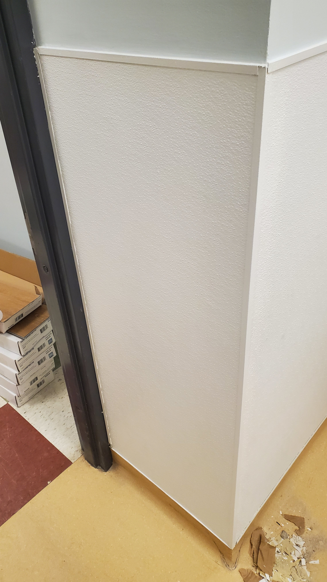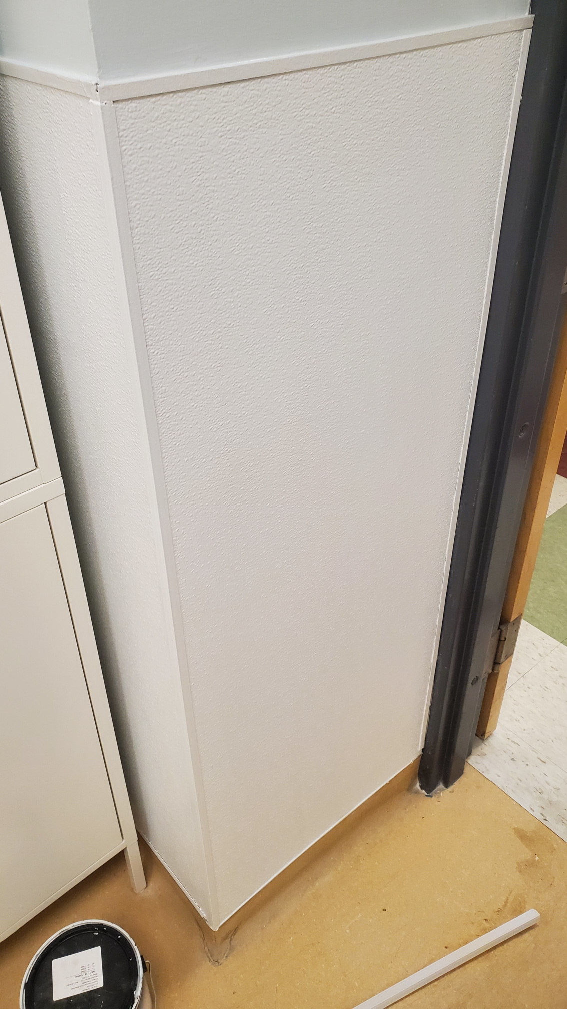Once installed, I painted to match and fixed the damaged areas on the wall.