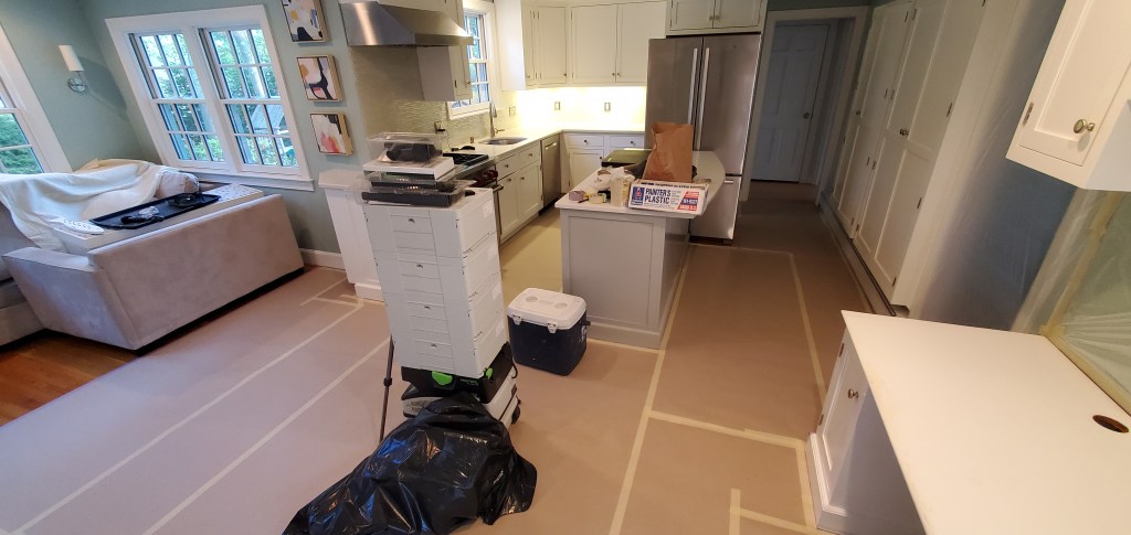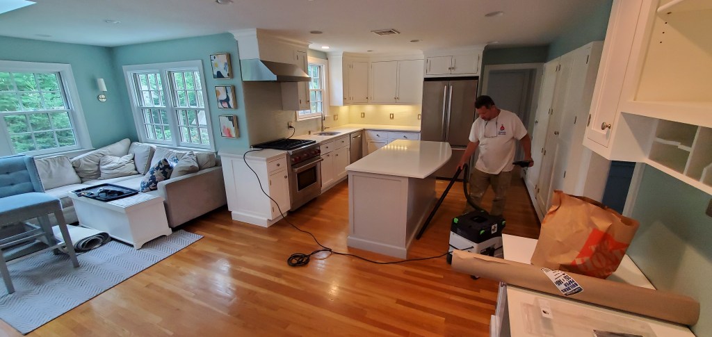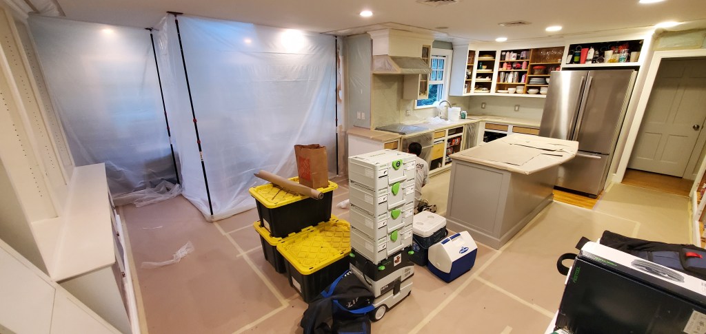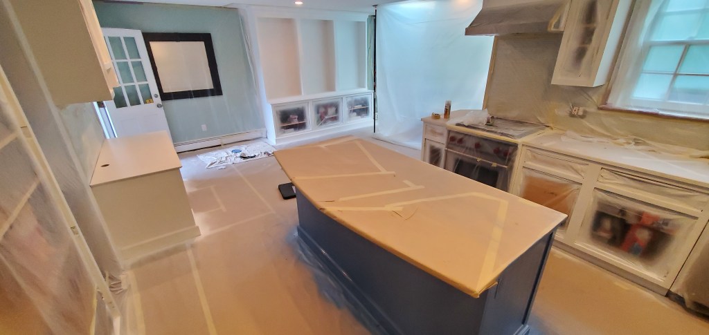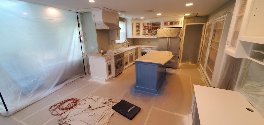 We pay attention to every detail and to the homeowner’s residence. Once the cabinets were sprayed, we proceeded to the next step of taking off all the plastic and paper and assembling the cabinet doors.