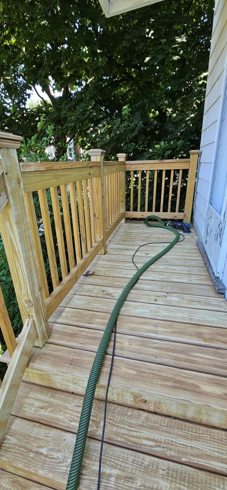 - Cleaning: Remove any dirt, debris, or mildew using a deck cleaner. For best results, use a power washer to thoroughly clean the surface.